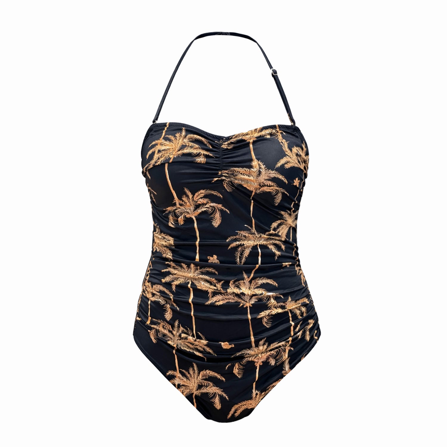 Sahara Foil Black Gathered Bandeau Swimsuit