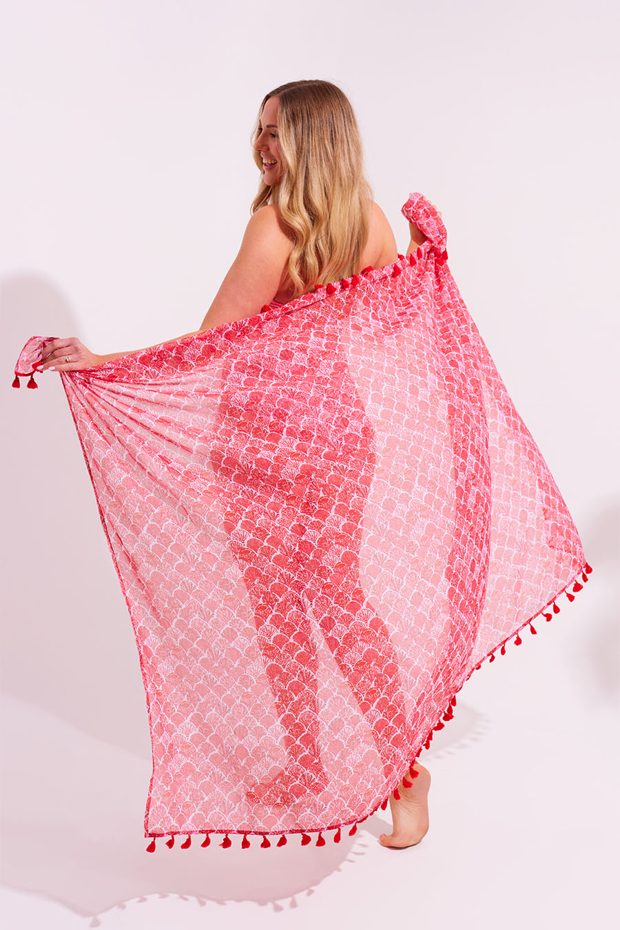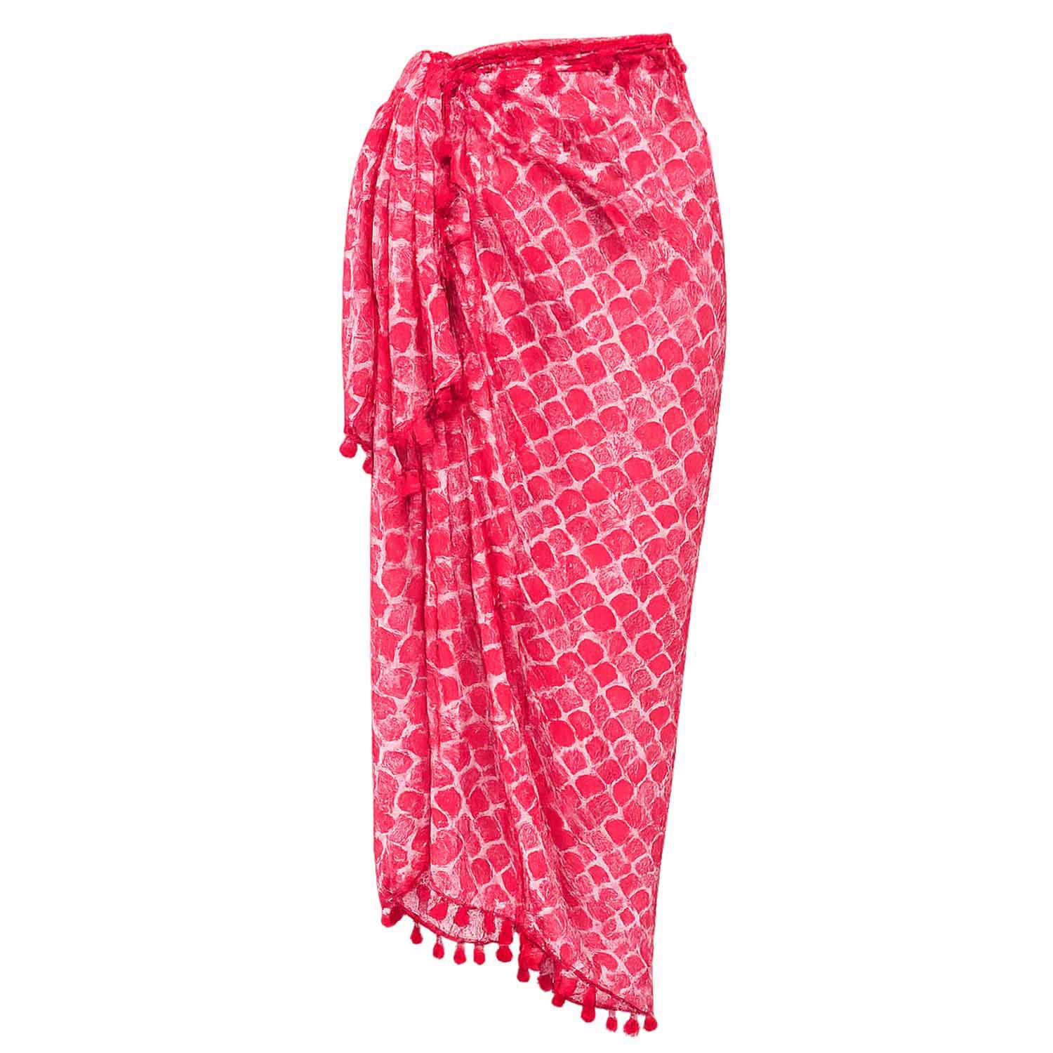 This stunning pareo exudes elegance with its fresh Grecian shell-inspired accents in pink, red and white. This pink Crete pareo has chiffon tassel trim detailing along the top and bottom sides and is made with super soft chiffon fabric, the perfect stylish accessory to tie around your waist whilst lounging by the pool or wrap up around you as a dress to go for lunch. Pair with our matching Crete bandeau swimsuit to complete your supremely sophisticated holiday look.